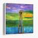 Introducing 'Zephyr's Domain: Vibrant Landscape with Windmill,' a captivating canvas art print that immerses viewers in a tranquil and rustic setting, blending vivid colors with serene imagery. This masterful artwork showcases a tall, slender windmill as the focal point, set against a backdrop of a dramatically painted sky and lush landscape, creating a harmonious and peaceful scene.