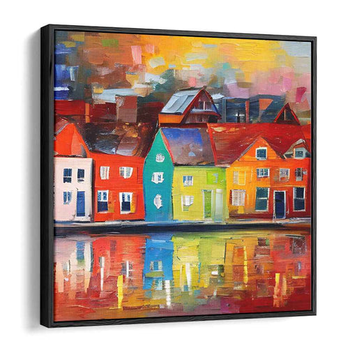 Sails Of Spectrum Harbor: Vibrant Waterfront Townscape Canvas Art