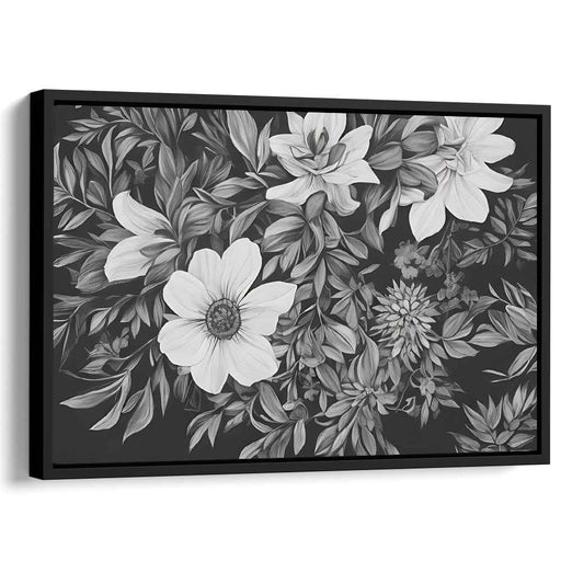 Ghostly Petal Harmony: Black and White Floral Canvas Art Print