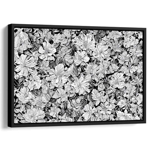 Ink Garden Delight: Detailed Black and White Botanical Canvas Art Print