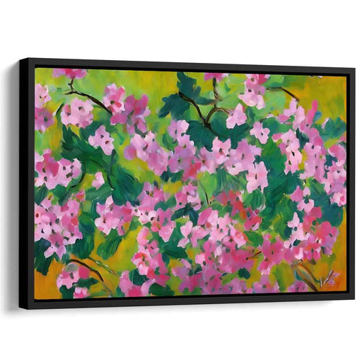 Springtime Blossom Symphony: Impressionist Pink Flowers on Green Canvas Art