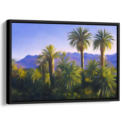 Mountain Whisper Amid Palm Symphony: Lush Palms Against Rugged Mountains Canvas Art