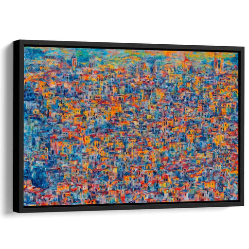 €85,95 EUR €122,95Introducing "Spectrum Streets Buzzing Brightly," a mesmerizing canvas art print that unveils an aerial perspective of a vibrant historic city, teem...
