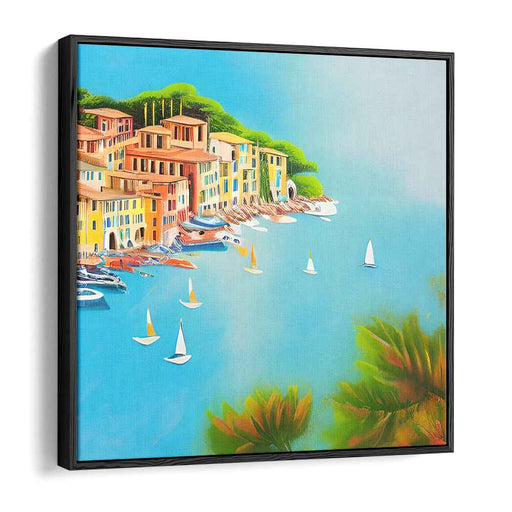 Harbor Haven Impressions: Vibrant Coastal Town Canvas Art Print