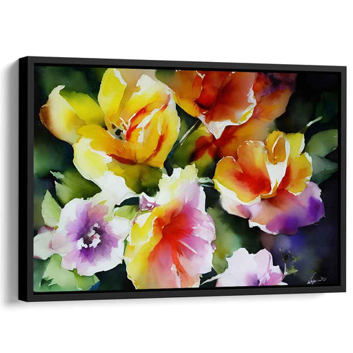 Blossoms Dance in Raindrops: Watercolor Floral Garden Canvas Art Print