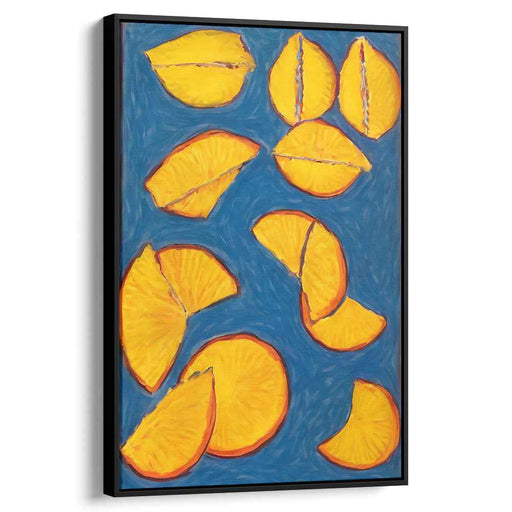 Tangerine Sonata: Vibrant Orange Slices on Blue Abstract Canvas Art