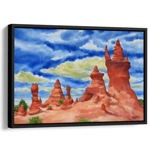 Majestic Desert Spires: Vibrant Watercolor Landscape Canvas Art Print