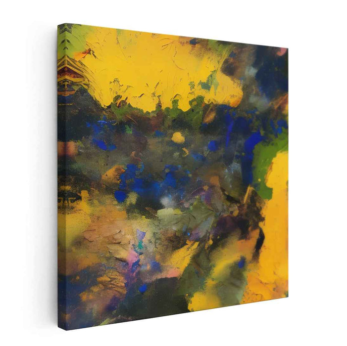 Introducing "Abstract Sunbeam Symphony," an electrifying canvas art that mesmerizes viewers with a symphony of vivid colors and dynamic textures, creating a visual feast that captivates the senses. The artwork's focal point is a bold, rich yellow that radiates warmth and vitality, interwoven with deep blues and greens that punctuate the canvas, infusing it with depth and intrigue.