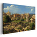 Introducing 'Ancient Echoes Ensemble: A Panorama of Ancient Grandeur,' a captivating canvas art that immerses viewers in a detailed depiction of an ancient cityscape reminiscent of the grandeur of ancient Rome. This sprawling panorama showcases majestic ruins, classical architecture, and vibrant greenery set under a vast, partly cloudy sky.
