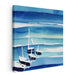 Step into the tranquil world of 'Aqua Serenity Depths: Serene Marine Landscape,' a mesmerizing canvas art piece that captures the essence of a serene marine setting. This artwork features a minimalist seascape, where varying shades of blue in gentle, rhythmic waves create a calming visual symphony. Three sailboats with pristine white sails gracefully float in the foreground, their reflections delicately mirrored in the water, enhancing the overall sense of peace and serenity.