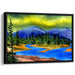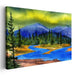 Introducing 'Aqueous Peaks: Watercolor Landscape with River and Mountains,' a mesmerizing canvas art that beckons viewers into a peaceful natural oasis, where vibrant colors and a dynamic composition create an immersive and tranquil experience. This captivating artwork portrays a serene river winding through a lush forest, flanked by majestic pine trees that stand tall along its banks. In the backdrop, grand mountains soar against a dramatic sky painted with swirling hues of yellow and green, hinting at either an impending storm or the enchanting moments of dawn or dusk.