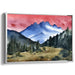 The sky, dominated by a striking red, casts a warm light that contrasts beautifully with the cool tones of the mountains, evoking feelings of tranquility and wonder. 'Azure Peak Symphony: Majestic Mountain Landscape' is a true embodiment of the Romanticism art movement, echoing the emotive and sublime works of renowned artists like Caspar David Friedrich.