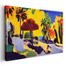 Introducing 'Bold Expressions of Nature,' a breathtaking canvas art piece that transports viewers to a vibrant tropical oasis, brimming with warmth and energy that captivates the soul. This dynamic artwork showcases a tropical landscape in all its glory, dominated by a rich palette of primary colors set against a backdrop of a deep cerulean blue sky transitioning into a radiant yellow, reminiscent of a sun-drenched day.