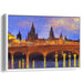 Introducing 'Brushstroke Echoes,' a mesmerizing canvas art print that transports viewers to a captivating cityscape at twilight, where a historic cathedral and graceful bridge bask in the warm glow of streetlights. This artwork is a harmonious symphony of vibrant colors and textured brushstrokes that pay homage to the essence of Impressionist artistry.