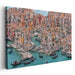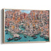 Introducing the enchanting "Canal Metropolis Mirage," a vibrant canal city canvas art print that transports viewers to a bustling canal city reminiscent of Venice, Italy. This mesmerizing artwork captures a labyrinth of colorful buildings painted in warm terracotta, ochre, and sienna hues, exuding intimacy and charm.