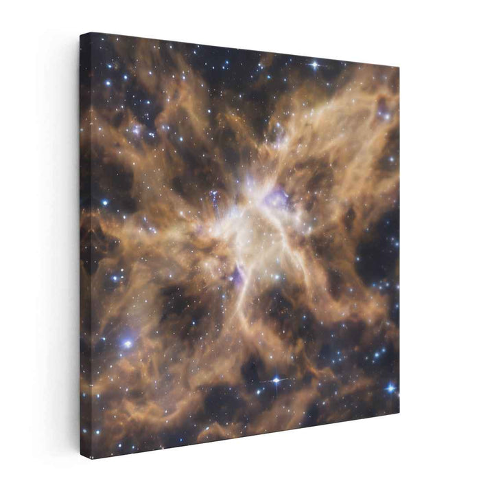 Introducing "Celestial Misty Dreamscapes," a mesmerizing canvas art print that transports viewers into the enchanting beauty of the cosmos, where a celestial nebula unfolds in all its ethereal glory, blending the surreal with the familiar. The focal point of this artwork is a grand nebula, its luminous gases and celestial dust intertwining in a mesmerizing dance, creating almost painterly patterns that captivate the eye.