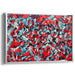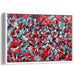 The predominant crimson hue forms a bold and intense backdrop, harmoniously complemented by accents of cool teal, soft grays, and delicate whites. These secondary colors not only provide depth and contrast but also create a visual cadence that effortlessly guides the viewer's gaze through the intricate composition.