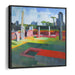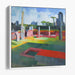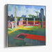 This painting evokes a sense of curiosity and wonder, encouraging viewers to explore the fusion of architecture and landscape in unexpected ways. The artwork's modernist interpretation and geometric elements create a thought-provoking atmosphere, ideal for sparking conversations and inspiring contemplation.
