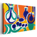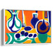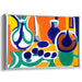 Introducing 'Chromatic Jungle Serenade: Fauvist Still Life with Vivid Colors,' a contemporary masterpiece that commands attention with its vibrant color palette and bold, simplistic shapes. This artwork presents a captivating still life arrangement featuring vases, a bowl, and fruit, depicted in a highly stylized manner that exudes modernity and energy.