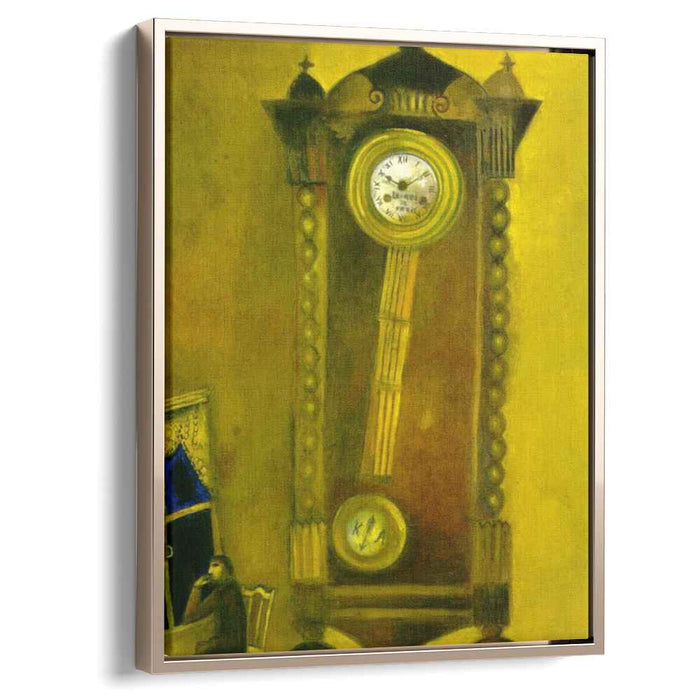 Unveil the enchanting world of Marc Chagall's iconic painting, "Clock" (1914). This captivating work, imbued with symbolism and dreamlike imagery, is meticulously reproduced on premium canvas, inviting you to immerse yourself in its whimsical and profound depths.