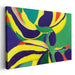 Introducing 'Color Blooms Abstracted,' a mesmerizing canvas art print that exudes joy and vitality through its dynamic abstract floral composition. This vibrant piece is dominated by a large, stylized flower bursting with deep blue and vivid yellow petals, elegantly interwoven against a lush, rich green backdrop. Splashes of red and orange peek through, infusing the artwork with depth and warmth.