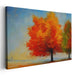 Introducing "Colorful Foliage Burst Painting," a captivating canvas art print that immerses viewers in the breathtaking beauty of fall, showcasing two majestic trees adorned in the full splendor of autumnal hues. This artwork vividly captures the essence of the season through a vibrant and warm palette dominated by fiery oranges and reds, cleverly contrasted with hints of green and a serene blue sky.
