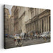 Introducing 'Concrete Realism: Urban Life Captured in Realist Detail,' a mesmerizing canvas art that transports viewers to a bustling European city street, rich with historic charm and daily activities. This captivating artwork offers a glimpse into the vibrant urban life, showcasing pedestrians navigating the streets, cars parked along the sides, and the majestic facades of ancient buildings towering above.