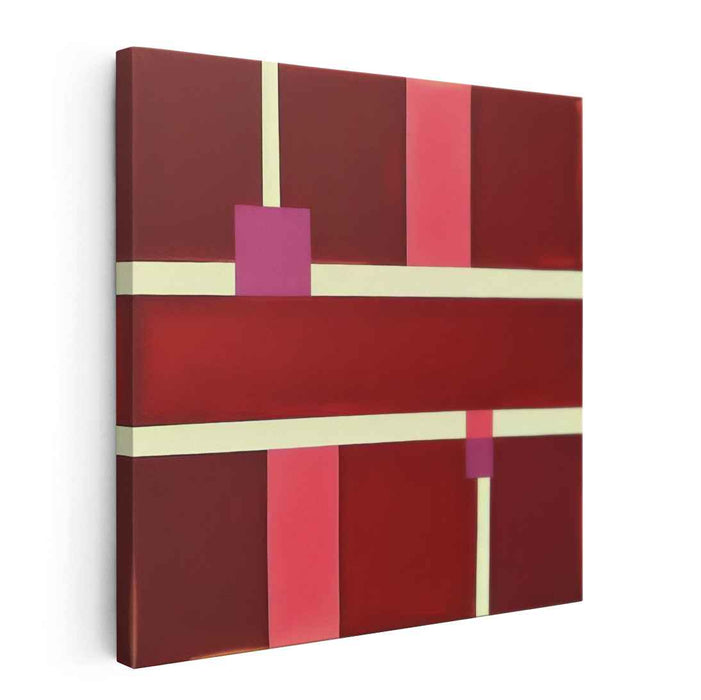 Introducing "Crimson Whispers Dance On Canvas," an abstract red and pink canvas art print that commands attention with its bold geometric abstraction and vibrant color palette. This captivating artwork showcases a harmonious composition of rectangles and squares, predominantly in a deep, rich red hue that exudes warmth and intensity.