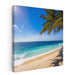 Step into the tranquil allure of 'Crystal Shores: Pristine Beach and Azure Waters Canvas Art,' a mesmerizing piece that transports you to a secluded beach haven. The artwork captures a scene where golden sands meet the azure ocean waters in a harmonious blend of nature's finest elements. Swaying palm trees add a tropical touch, their verdant fronds framing the canvas with vibrant hues.