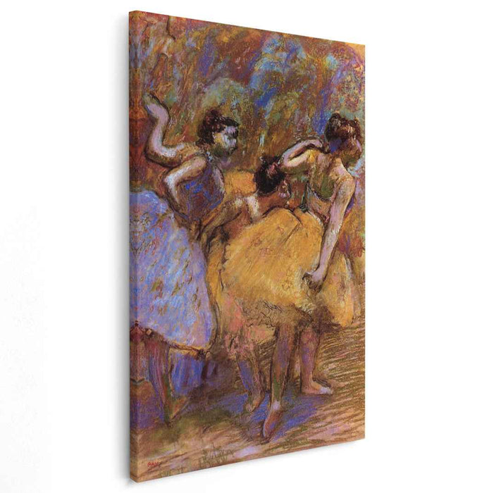 Bring the elegance of Edgar Degas' "Dancers" into your home with this stunning canvas print. The fade-resistant inks ensure that the pastel hues and delicate details will remain vibrant for years to come. "Dancers" becomes a timeless reminder of the grace, beauty, and enduring legacy of Impressionism.
