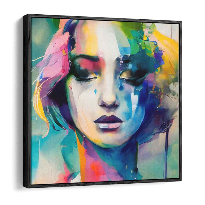 The subject of this piece, delicately detailed in a watercolor style, exudes serene beauty amidst the kaleidoscope of colors. With closed eyes, she emanates a dreamy and introspective aura, inviting contemplation and reflection. The bold use of bright, contrasting colors and fluid brushstrokes infuse the artwork with a sense of movement and spontaneity, echoing the emotional depth of modern expressionism.