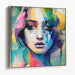 Introducing 'Dreamscape Colors,' a mesmerizing canvas art print that captures the essence of vibrant modern expressionism through a stunning portrait of a woman. This artwork is a visual symphony of vibrant colors, including splashes of pink, blue, green, and orange that dance across the canvas, creating a dynamic and lively effect that is sure to captivate any viewer.
