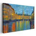 Introducing "Dusk Waterside Stroll," a mesmerizing canvas art print that transports viewers to a serene evening in a historic European city, reminiscent of the enchanting canals of Venice or Bruges. This captivating artwork captures a tranquil scene along a peaceful canal, where the grand architecture elegantly reflects on the water's surface, creating a symphony of light and color.