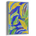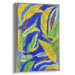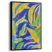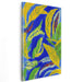 The striking blue backdrop serves as a dramatic contrast to the vivid yellow leaves that seem to sway and twirl across the canvas. Interwoven with the yellow foliage are splashes of green and red, adding depth and intricacy to the composition. The artist's style echoes abstract expressionism, characterized by spontaneous brushwork and a rich, saturated color palette that creates a harmonious yet lively visual spectacle.