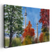 Introducing "Echoes Of Maple Majesty: CN Tower Amidst Vibrant Fall Foliage," a mesmerizing landscape canvas art piece that captures the iconic CN Tower in all its splendor against the backdrop of a vibrant autumnal scene. This artwork seamlessly blends realism and impressionism, presenting the CN Tower as a majestic focal point set against a clear blue sky, surrounded by trees ablaze with the rich hues of fall.