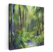 Introducing 'Emerald Oasis Dreams: Lush Green Tropical Canvas Art Print,' a mesmerizing piece that transports viewers into the heart of a vibrant tropical rainforest. This captivating artwork showcases a lush world where tall, slender trees tower majestically, their verdant leaves forming a delicate canopy that gently filters the sunlight, casting a serene, dappled light over the forest floor.