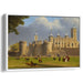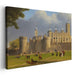 Introducing 'Enchanted Ballroom,' a captivating historical landscape canvas art that transports viewers back in time to a serene scene set against the grandeur of a majestic castle. This meticulously detailed artwork showcases a large, sturdy castle with multiple towers and a fortified wall, painted in soft, earthy tones of beige and gray that beautifully contrast the vivid blue sky and fluffy white clouds above.