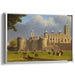 'Enchanted Ballroom' is a superb example of historical landscape painting, emphasizing architectural precision and everyday life during the depicted period. The primary color palette includes soft beige and gray for the castle, harmonized with the lush green of the grass and the deep blue of the sky. Secondary colors like browns, reds, and whites in the figures' clothing add warmth and richness to the composition.