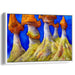 Introducing the mesmerizing "Enchanted Pillars: Surreal Mushroom Landscape Canvas Art Print," a portal to an otherworldly realm where towering, mushroom-like structures stand as nature's majestic sculptures. This captivating artwork beckons viewers into a dreamlike landscape, where vibrant blues of the sky harmonize with the earthy tones of the mushrooms, ranging from deep oranges to soft yellows.