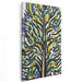 The artwork's dynamic use of colors and abstract form transforms the tree into a powerful emblem of life. The rich, earthy brown of the sturdy tree trunk anchors the composition, while the foliage bursts forth in deep blues, vivid greens, and hints of yellow and purple, evoking the lushness of nature in full bloom. This explosion of colors adds a sense of vitality and vigor to the piece, reminiscent of the untamed beauty of the natural world.