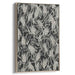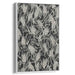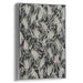 Introducing 'Ephemeral Shadows Dance,' a contemporary abstract black and gray canvas art print that mesmerizes with its intricate pattern of abstract feathers set against a stark black background. The delicate shades of gray and white feathers create a striking contrast, enhancing the visual allure of the piece.