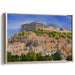 Introducing the 'Eternal Echoes Whispering Ruins: Timeless Beauty of Ancient Athens' canvas art print, a captivating masterpiece that transports viewers to the grandeur of the ancient Acropolis of Athens, perched majestically on a rocky outcrop above the city. This artwork skillfully captures the iconic Parthenon with meticulous attention to detail, showcasing its Doric columns and intricate architectural elements that have withstood the test of time.