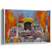 Introducing 'Ethereal Byzantine Reverie,' an awe-inspiring canvas art print that vividly captures the dramatic and grandiose beauty of the iconic Hagia Sophia. This vibrant artwork immerses viewers in a dynamic portrayal of this architectural marvel, dominated by a fiery palette of bold yellows and intense oranges, setting a scene of unparalleled drama and grandeur.