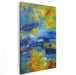 The bold brushstrokes and textured layers of paint intermingle to form a dynamic fusion of color and shape, creating a visual spectacle that exudes both movement and depth. The dominance of blue in the lower portion hints at a reflective body of water or a distant horizon, while the warmer yellows and oranges in the upper part evoke a lively sky at the break of dawn or dusk.