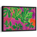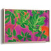 The background is a bold tapestry of purples and oranges, serving as a striking contrast that enhances the vividness of the greenery. The purple undertones infuse the piece with an air of mystery and allure, while the pops of orange inject warmth and dynamism, creating an energetic and refreshing visual experience.