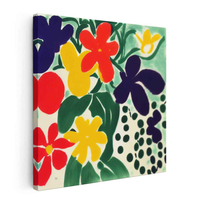 Introducing 'Fauvist Fusion,' a vibrant canvas art print that radiates joy and exuberance, celebrating the beauty and liveliness of nature through a lush arrangement of flowers. This captivating artwork features a profusion of blooms, each depicted in bold, saturated colors that immediately capture attention.