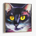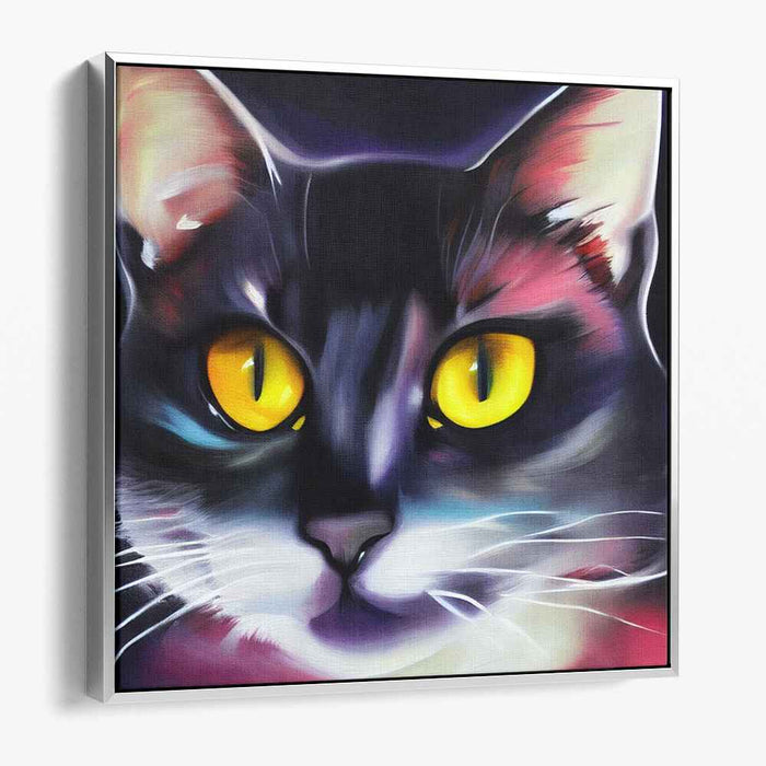 Introducing 'Feline Gaze Illusion,' a mesmerizing hyperrealistic cat portrait canvas art print that captivates viewers with the intense and enigmatic stare of a feline subject. This artwork showcases a close-up view of a cat, with its vibrant yellow eyes drawing immediate attention, exuding a sense of mystery and intrigue.