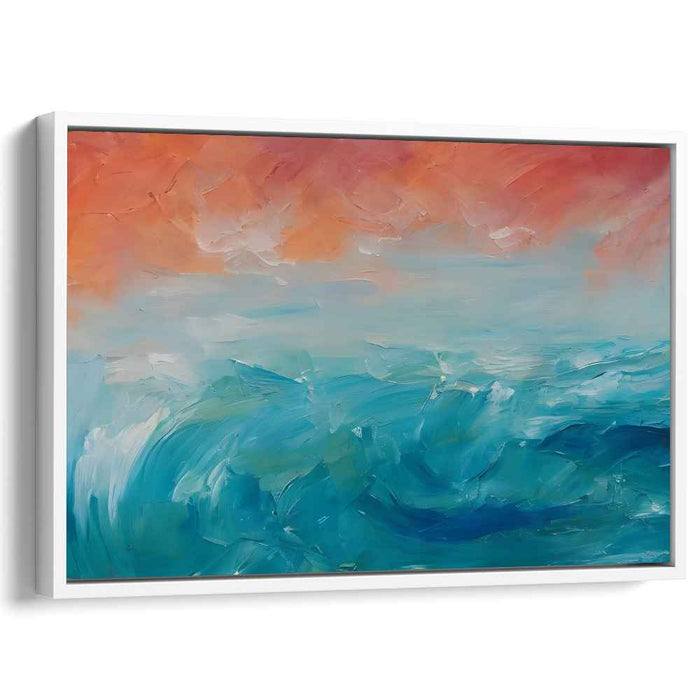 Fiery Sunset Waves: Impressionist Ocean Canvas Art Print