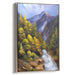 Introducing "Foliage Cascade Symphony: Autumn Mountain Waterfall Landscape Canvas Art," a breathtaking masterpiece that transports viewers to a serene mountain scene, capturing nature's beauty in vivid detail. This captivating artwork features a majestic mountain range with snow-capped peaks reaching towards a partly cloudy sky, exuding a sense of tranquility and grandeur.