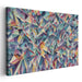 Step into the mesmerizing world of 'Fragmented Dreamscape Symphony: A Modern Abstract Mosaic,' a captivating canvas art piece that intricately weaves together a myriad of colorful triangles, forming a hypnotic display of geometric abstraction. Dominated by a cool palette of blues, purples, and greens, interspersed with lively hints of pink and yellow, this artwork offers a dynamic and vibrant visual experience.